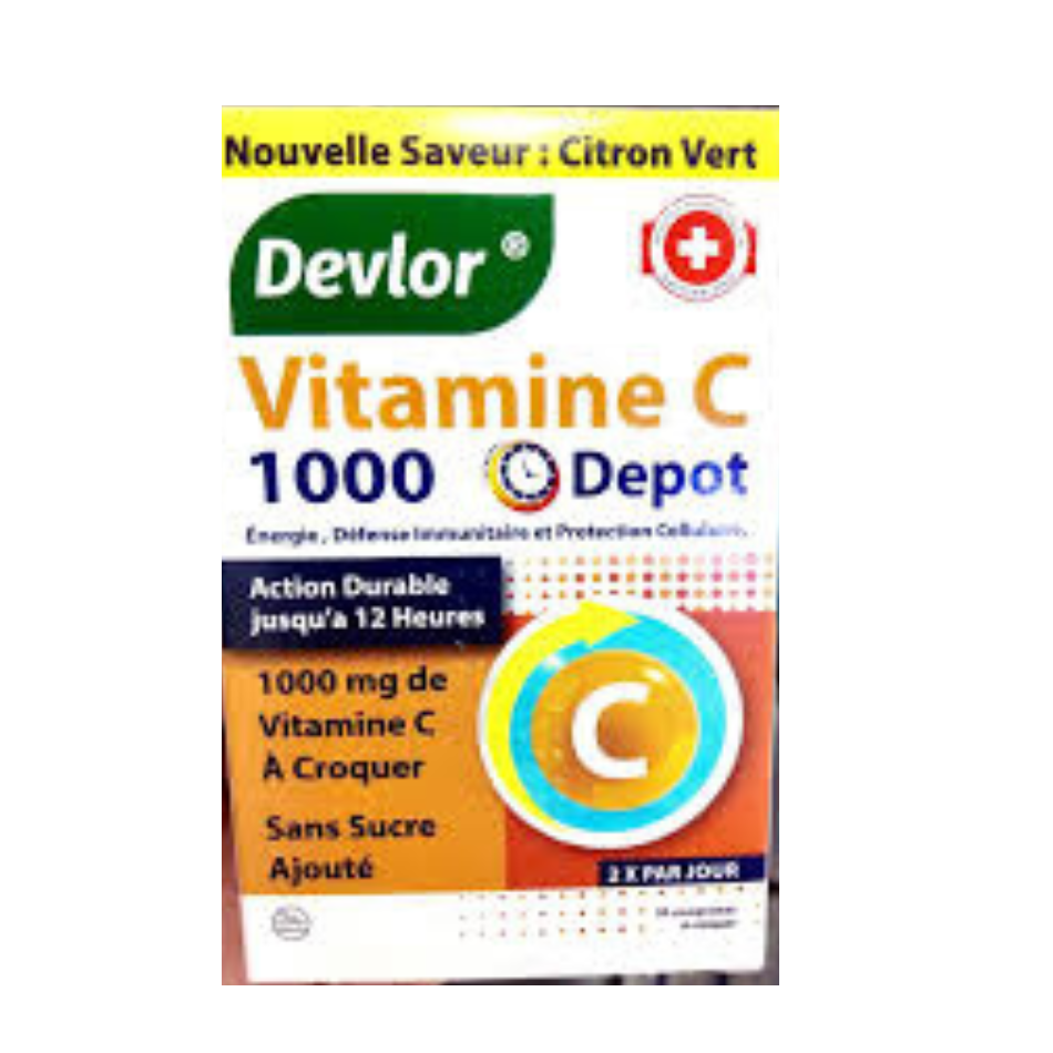 DEVLOR Vitamine C est un complément alimentaire à base de vitamine C, conçu pour renforcer les défenses immunitaires, protéger les cellules contre le stress oxydatif, et aider à réduire la fatigue. Comme tous les compléments en vitamine C, il soutient la formation de collagène, utile pour la peau, les os, et les vaisseaux sanguins. Il est à prendre selon les indications, sans dépasser la dose recommandée, et ne remplace pas une alimentation équilibrée.
