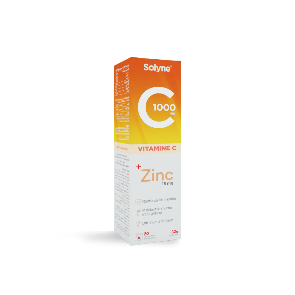 Solyne vitamine C associé au zinc contribue à réduire la fatigue et permet de retrouver tonus et énergie.