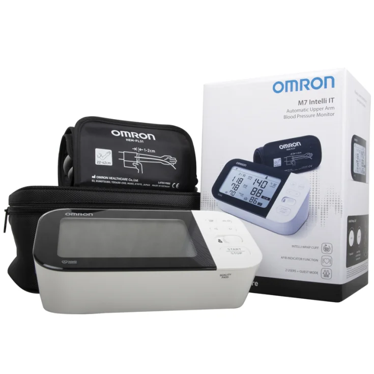 Le Omron M7 Intelli IT est un tensiomètre électronique de bras, validé cliniquement, doté de la connectivité Bluetooth. Il permet de mesurer la tension artérielle à domicile avec précision, et offre des fonctions avancées de détection de troubles du rythme cardiaque, comme la fibrillation auriculaire (AFib).
